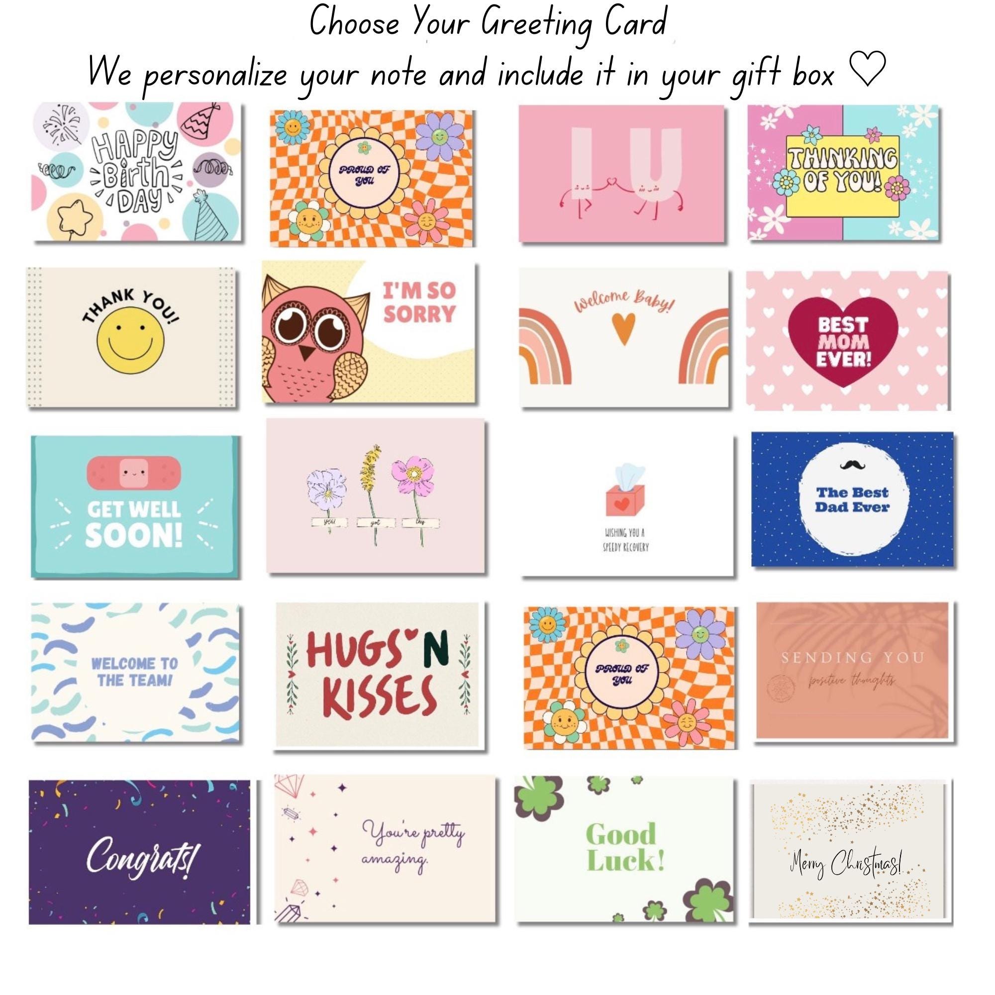 • Personalized Cards: Each box includes a printed message card with your note added at checkout. Please check spelling carefully before submitting.