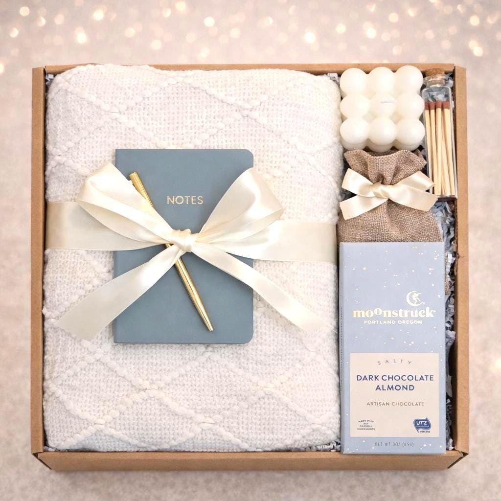 Every corporate gift basket is carefully assembled with a mix of cozy, pampering, and practical essentials that feel both professional and personal. From candles and wellness items to gourmet treats and personalized touches, this box is a versatile choice for companies looking to strengthen relationships and show gratitude.