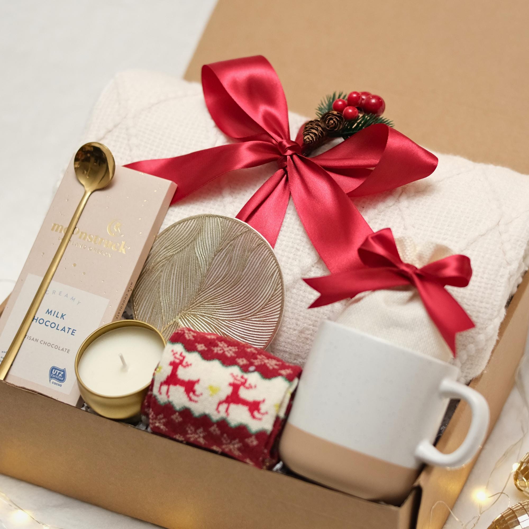 Cozy Christmas Gift Box β Holiday Care Package with Blanket, Mugs and Chocolate | Ships Free in 1 Day