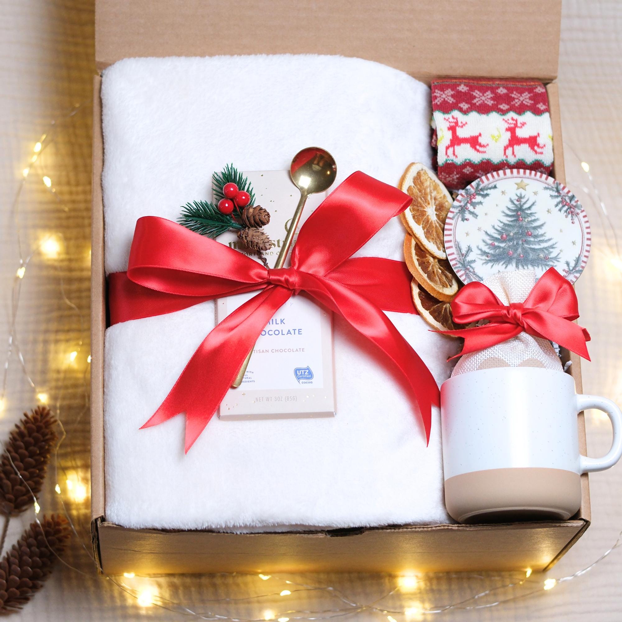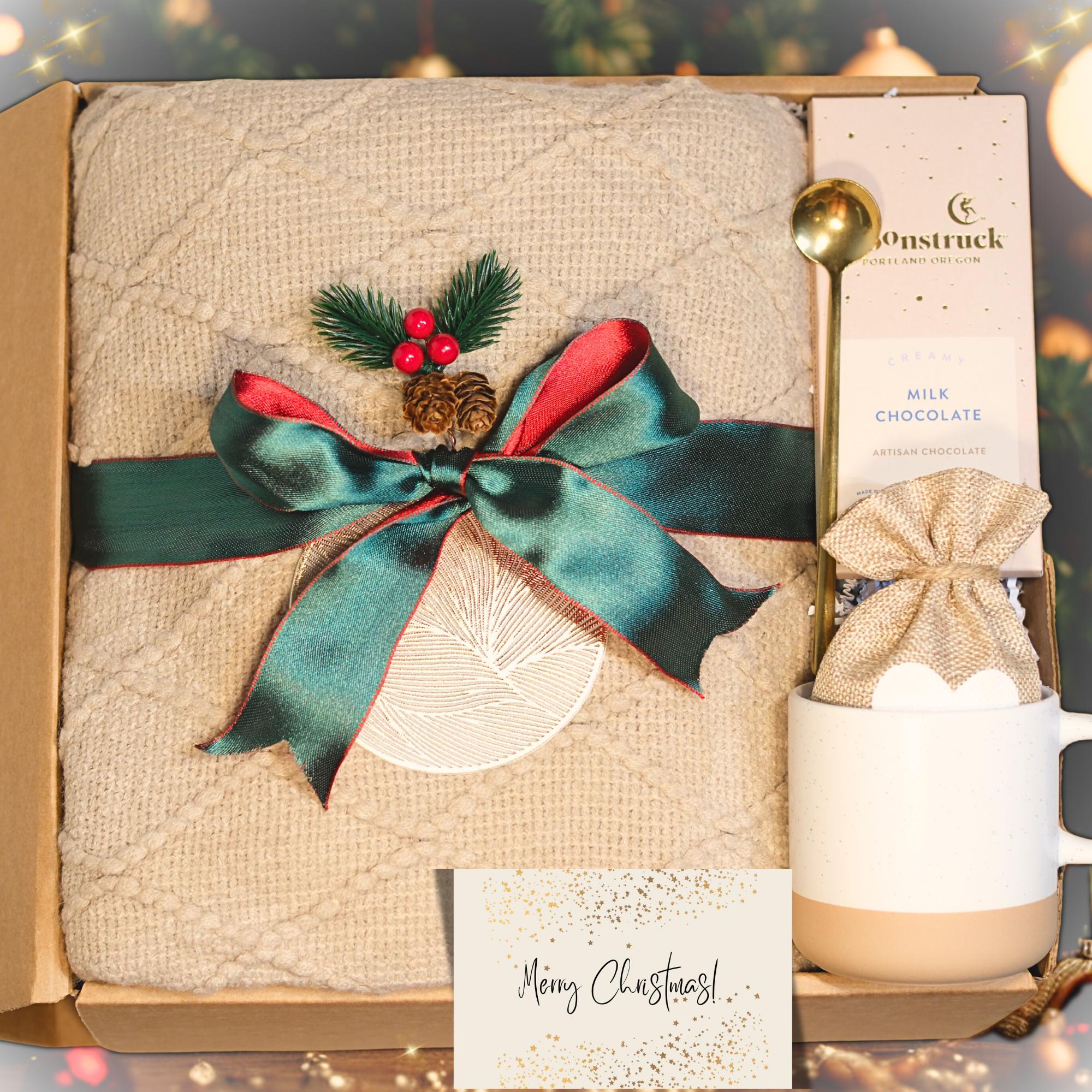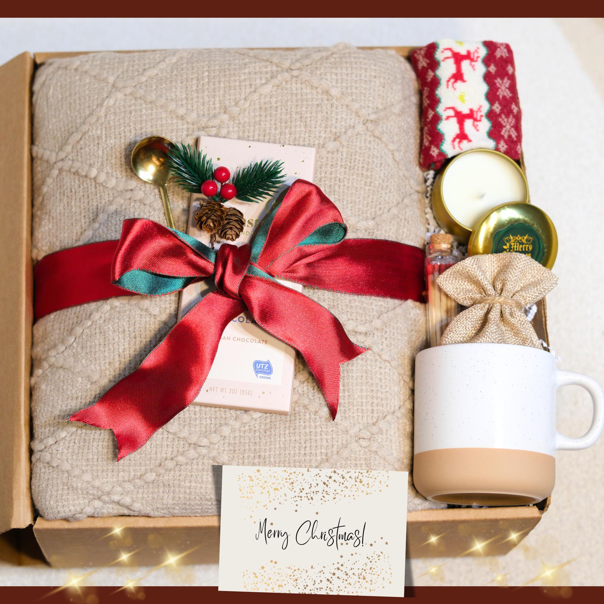 Cozy Christmas Gift Box β Holiday Care Package with Blanket, Mugs and Chocolate | Ships in 1 Day